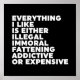 Everything I Like Is Either Illegal, Immoral, Fattening, Addictive Or Expensive Black & White Quote Saying Funny Typography
