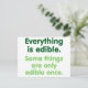 Illogical logic and a silly statement that will make you laugh. Reads "Everything is edible. Some things are edible only once."
