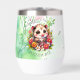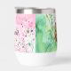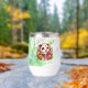 Cute personalised tumbler with cartoon opossums with possum pun. Cute pink possum in flowers. Background is sage green and pink.