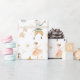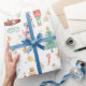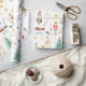 Nutcracker Christmas wrapping paper featuring watercolor-painted characters like the mouse king, the sugarplum fairy, Drosselmeyer, Clara, and of course, the Nutcracker.