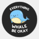 Everything Whale Be Okay Funny Whale Pun Dark BG Classic Round Sticker