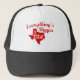 This baseball cap contains a red graphic and text in the shape of the state of Texas.
