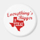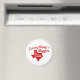 This magnet contains a red graphic and text in the shape of the state of Texas.