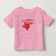 This toddler shirt contains a red graphic and text in the shape of the state of Texas.