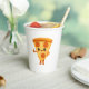 Cartoon style pizza slice giving a thumbs up.