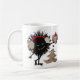 Customisable funny evil Christmas mug with a dark textured illustration with an evil black bug who holds a Christmas present with red ribbon. Even in its evilness, it’s as kind as to give presents. Next to the evil character there is a Christmas tree, with red Christmas balls and a red star. This evil character mug will make a great Christmas gift for someone who loves gothic style and funny cartoon characters.