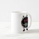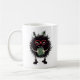 Geek mug with a fun illustration of an evil bug student who is prepared to go back to school. She has a grin and eyeglasses. Holding her textbook, she's waiting for lessons to start, eager to read. This reading related mug is great for a geek girl.