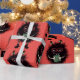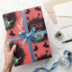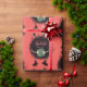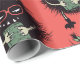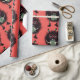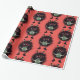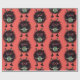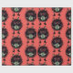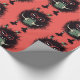 Book lover wrapping paper with a funny vector illustration of an evil hairy creature with ponytails and eyeglasses holding a book and grinning with its sharp teeth.