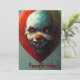 Evil clown with evil grin on red balloon wishing you happy birthday