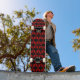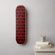 The seamless pattern consists of evil clown hair with flaming red hair and forms the a black body. The head is black with an evil red grin and a striped black; and red dunce cap. The elements of the of the images flow together making it feel a bit strange.