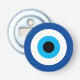 Evil Eye Blue Mati nazar symbol bottle opener design. Blue mati Greek / Turkish symbol for protection and good luck. Handy for home, party or office. Round magnetic opener gift with circles.