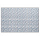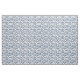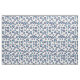 Crisp white fabric with a Mediterranean navy blue and aqua evil eye circular pattern