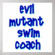 Great gift for the swim coach, that hard driving person who makes everybody swim so much and so early in the morning. Who else, but the evil mutant swim coach