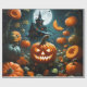 Evil pumpkin with the black castle under the Moonlight.