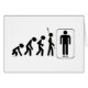 The men's restroom may not have a line out the door, but there IS a long line of evolution leading to that stick figure on the bathroom sign. Geek humour riffs off the familiar anthropology graphic showing the descent of mankind. Your ancestors will be proud.