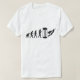 Funny silhouetted evolution chart depicts monkey to phone booth to Superhero.