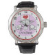 Customise this cute children's heart fairy watch with your child's name. Large easy-to-read numbers surround the smiling Heart Fairy. Great gift for a new parent or for a young child. Soft pink watch face colour.