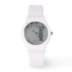 This beautiful white sporty watch is shower proof only. It’s a women’s wrist watch with a comfortable silicon band, and 1 year warranty.