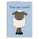 A sweet little lamb against a blue background. Artwork by Trina Clark