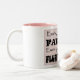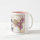 White and Pink Two Tone Coffee Mug imprinted with "Ewe's not fat, Ewe's just Fluffy" saying!