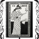 Art nouveau bookplate of a lady sharpening a pen for writing