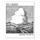 A large Ex Libris rubber stamp design with an imaginary landscape with a cloud.