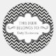 Black and white modern, elegant bookplate label stickers- Black and white chevrons pattern striped background. In the centre is a an elegant emblem with charcoal edges and curlicues. Reads 'This Book Belongs to' in elegant lettering. Custom name underneath. Click Customise option to change text colours, size, and font styles. Even change the white stripes by changing the background colour.