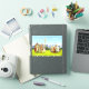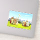 The stick looks amazing. Unfortunately, it would not stick on our suitcase as it was textured. When we found a non-textured (smooth) suitcase, the sticker stuck and looks great. The printing looked awesome.