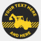 Silhouette of excavator. Vector icons with customisable colour. Two text fields on circle.