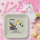 Perfect theme birthday party plates for kids who love construction vehicles. Add a name, and party details by clicking the "Personalise" button. Features an excavator in yellow and dark grey vivid colours.