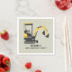Perfect theme birthday party aper plates for kids who love construction vehicles. Add a name, and party details by clicking the "Personalise" button. Features an excavator in yellow and dark grey vivid colours.