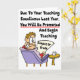 A Fun Card For Teachers. Imagine a Teacher's surprise when they are challenged to teach a different subject or grade level. Our greeting card titled, Due To Your Teaching Excellence Last Year, You Will Be Promoted And Begin Teaching XXXXXX XXXXXX ?????? You get to fill in the Subject or Grade to suit your needs. Any teacher would like this fun design, which can also be found on many other products in our store. Browse through and find perfect gifting products for your teachers, men, women, all family members & friend's, on Mother's Day, Father's Day, Thanksgiving, New Years, Christmas, July 4th Independence Day, Veterans Day, Saint Patrick's Day, Halloween and maybe a few more. Browse through, and I'm sure you will find that perfect gift for yourself and others. Thank you for your time. Enjoy