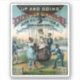 Circa 1885 - Advertisement for Ginger Ale with balloon and basket with black attendants. Two women drink Excelsior Ginger Ale, implying the carbonation helps the balloon to rise. Image of two fashionably dressed women in slim long dresses and bonnets embarking on a hot air balloon ride, one stands inside the basket holding a lace-edged handkerchief with a moustached balloon operator with binoculars and a monocle, the other sips ginger ale from a glass as she begins to ascend a rope ladder into the craft; two African-American men with ginger ale bottles attend the balloon; a large crowd of people watches the spectacle from stands behind a white wood fence painted with advertising slogans