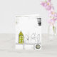 This fun Thank you card has a blue house with scribbles and three doodle flowers.