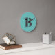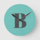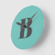 Exclusive Light Teal Grey Monogram Initial Letter Round Clock