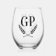 Exclusive wine glasses personalised with name initials. Elegant typography monogram logo with classy wreath design.