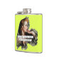 The flask itself is fine. It’s a cheap flask, obviously bought in bulk, however am prepared to overlook that. Given that it is a personalized item, I would have liked to have seen gift boxing instead of the generic packaging. Terrible printing, and/or quality. It’s a cheap, tacky vinyl. It is not cut straight and is also applied in a way that it is overhanging the bottom, causing the glue to catch on items and it will eventually roll and tear, damaging the wrap.