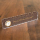Executive Male Acrylic Desk Nameplate with Clock. Perfect for his credenza Brown textured leather look with Brandy Coloured Text. Texture modified from design released under CCO license.