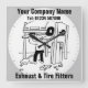 Garage services business. Tires and exhausts clock. Promote your Exhaust & Tire Fitters business. Make it personal by adding your company name and phone number. Includes faint clock face background.