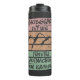 tumbler is firm and good size to hold a good grip on. Lid is durable as so is the tumbler itself. non breakable. holds just about 2 cups of coffee. image is good and stands out well for others to notice the printing of my artwork. the ink color black turned out well. that part I like.. it's solid and easily readable as far as the word/lettering is on the tumbler. The ink color Red is good as well, but the other colors not as vibrant as I thought, but yet I still like it!