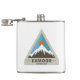 The flask itself is fine. It’s a cheap flask, obviously bought in bulk, however am prepared to overlook that. Given that it is a personalized item, I would have liked to have seen gift boxing instead of the generic packaging. Terrible printing, and/or quality. It’s a cheap, tacky vinyl. It is not cut straight and is also applied in a way that it is overhanging the bottom, causing the glue to catch on items and it will eventually roll and tear, damaging the wrap.
