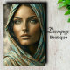 Transform your creative projects with Decoupage_Boutique's premium portrait decoupage paper. This striking design features a captivating woman with luminous green eyes and delicate features wrapped in a turquoise and gold patterned headscarf against a soft neutral background. This design creates an elegant focal point perfect for bedroom accent walls, luxury spas, or bohemian-inspired spaces. COLOR COMBINATIONS: turquoise, gold, cream, bronze, and sage green enhance natural beauty. DESIGN FEATURES: detailed facial features, luxurious fabric textures, and rich contrasting colours bring depth to your projects. PERFECT FOR: jewellery boxes, vanity trays, accent furniture, beauty salons, boutique displays, and decorative panels. Ideal for a variety of projects both large and small.