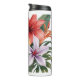 A thermal bottle with an explosive bouquet of exotic flowers in warm and vibrant colors — orange lilies, coral and white blooms against a dark elegant background. A tropical and lush design capturing the beauty and generosity of summer nature. Perfect for flower lovers, nature enthusiasts and anyone drawn to bold beautiful colors.
