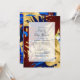 Drive through bridal or baby shower invitation featuring a jungle pattern in hues of blue, burgundy and gold.