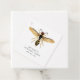 Favour tags featuring a golden wasp with red eyes and a luxurious jungle pattern in hues of gold, red and blue on the reverse.