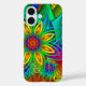 Exotic fractal phone case featuring an original artistic design with colorful flowers.
