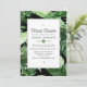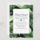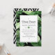 Trendy virtual long distance bridal shower invitation featuring green tropical beach leaves and a black and white geometric pattern.