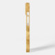 This shiny phone case has an exotic geometric background in tones of gold and brown. The diamond shapes in the pattern have lines that resemble palm leaves. Your name is written in script in brown gold at the lower right. Pretty!