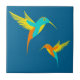 Exotic hummingbird pattern on electric blue background (background colour can be changed)