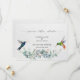 Unique and charming design featuring watercolour tropical flowers (hibiscus, protea, eucalyptus, palm leaves), cute hummingbirds, all on faux watercolor paper background. Use Personalize tool to add your info, make changes. For matching items, please, visit my Tropical Floral Hummingbird Collection.